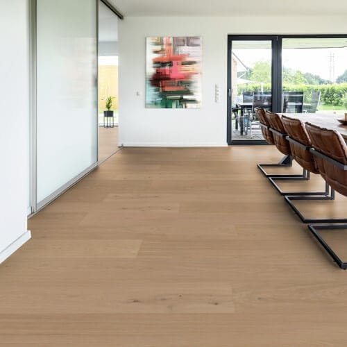 Los suelos híbridos destacan por su elevada resistencia a la humedad, a los impactos y a los arañazos, lo que los convierte en una opción ideal para zonas de mucho tránsito y espacios que requieren un mantenimiento reducido. Son perfectos para cocinas, baños, salones, pasillos e incluso para entornos comerciales, ya que soportan condiciones exigentes sin comprometer su aspecto ni su funcionalidad.